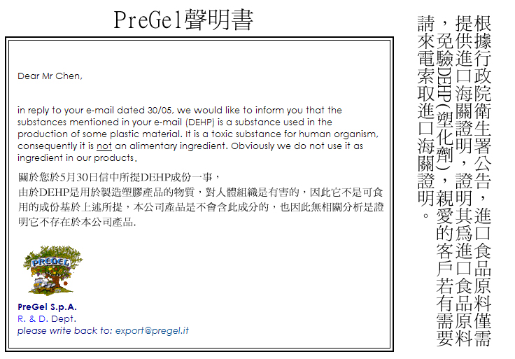 PreGel聲明書